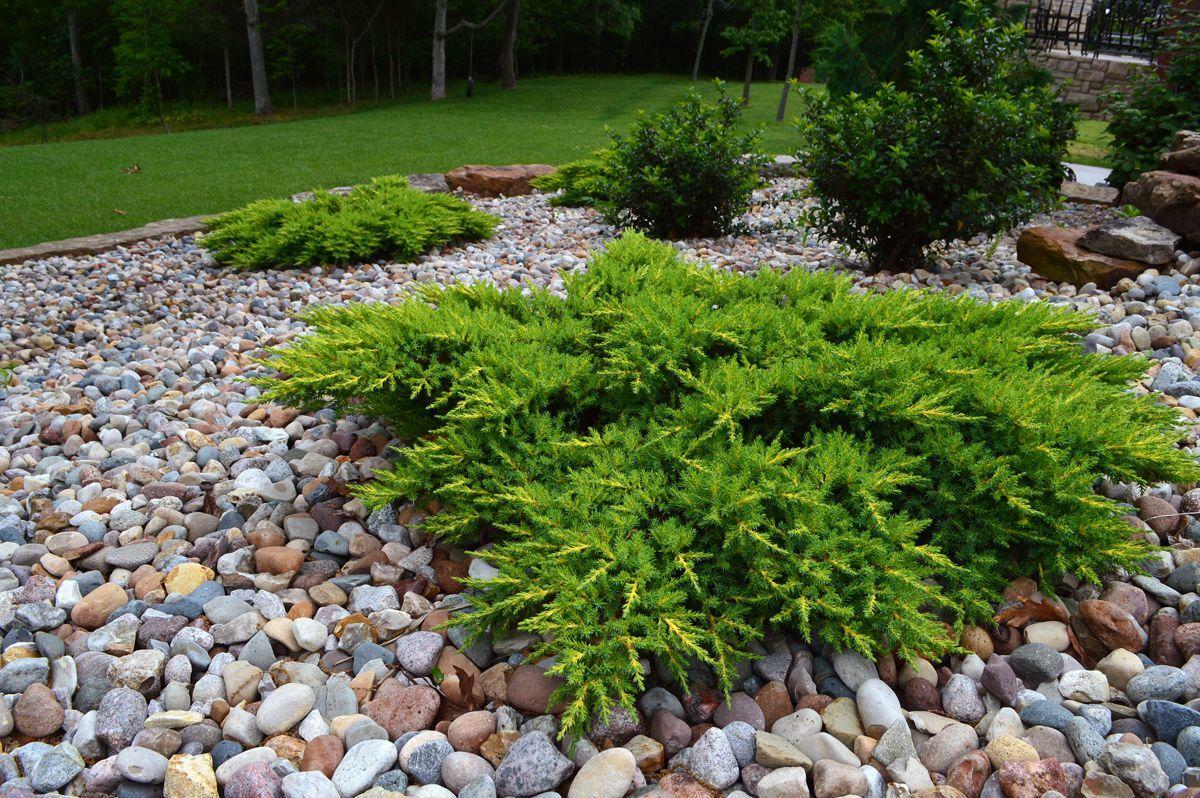 Некоторые сорта можжевельника китайского представляют собой раскидистые кусты и подходят для оформления небольших участков: