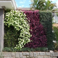 Отдельно стоящая вертикальная стена Ball, полная тропических растений, таких как каладиум, алоказия, имбирь, бегония, антуриум и колоказия, и оснащенная системой капельного орошения, адаптированной к потребностям растения — соблазнительны и очаровательны — в течение всего вегетационного периода.