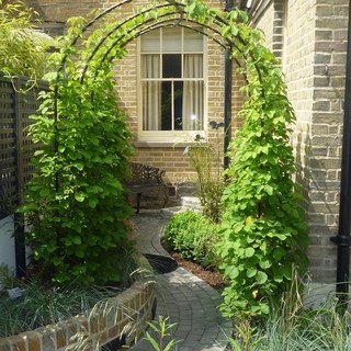 Галерея-тоннель из прямоугольных конструкций создает впечатление дикого уголка, где буйствуют краски природы. На небольшом участке будет достаточно расположить 3-4 таких арки для создания места для отдыха