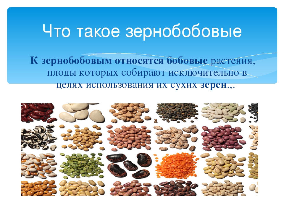 К зернобобовым относят те культуры, которые выращивают для получения сухих зерен. По своей значимости они стоят на втором месте после злаков. Трудно перечислить все названия бобовых культур, которые используются в пищу человеком или сельскохозяйственными животными. Вот лишь некоторые:
