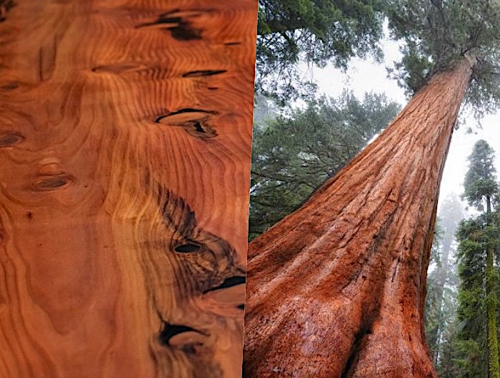 Красное дерево очень мягкое и удобное в обработке, а также легкое. Цвет варьируется от бледно-белого или желтого до темно-красного и красновато-коричневого. Растущие так же высоко и быстро, как и эти гиганты, волокна обычно прямые, а волокна старого красного дерева очень плотные. Древесина имеет грубую текстуру, она устойчива к гниению и очень устойчива к насекомым, что делает ее отличным выбором для террас и других проектов на открытом воздухе.