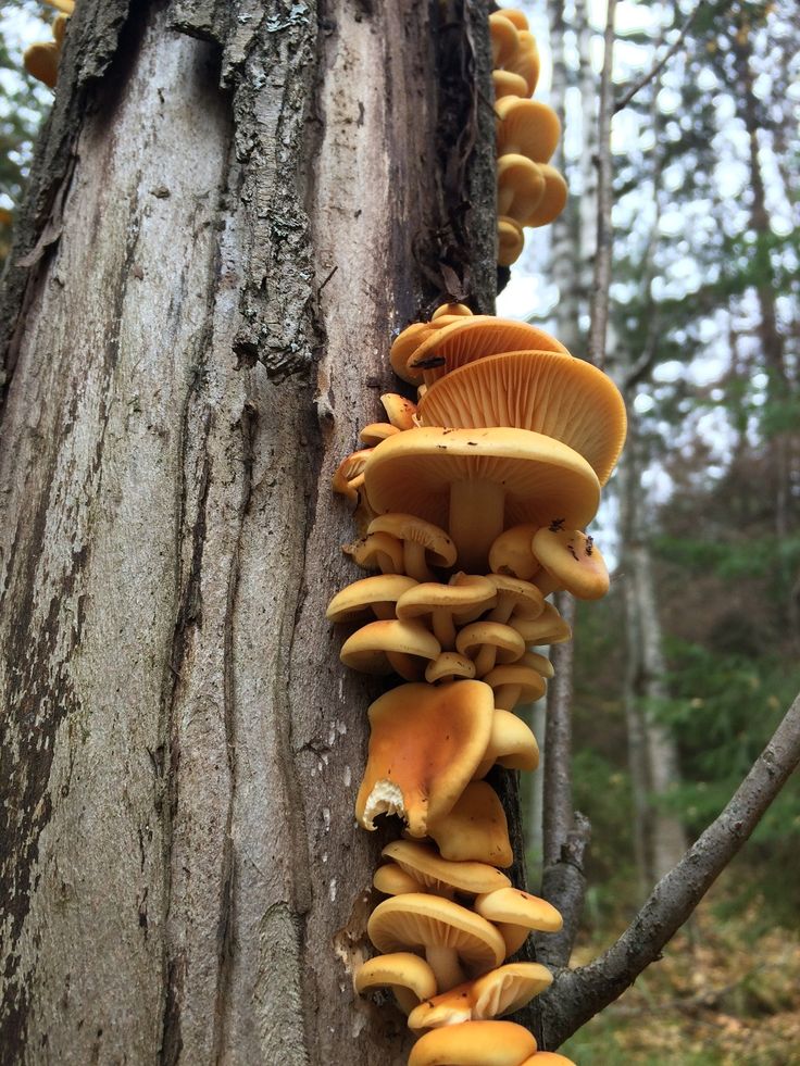 Обычно грибы, растущие на дереве, говорят о том, что дерево нездоровое и грибок уже пожирает его изнутри.