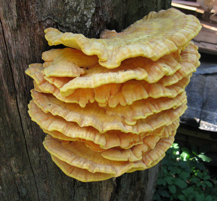 0095 Laetiporus sulphureus ) — трутовка, растущая на деревьях. Родом из Северной Америки и Европы. Он также широко известен как лесной краб, серный шельф или серный трутовик. 2. Грибок бифштекса (Fistulina Hepatica)