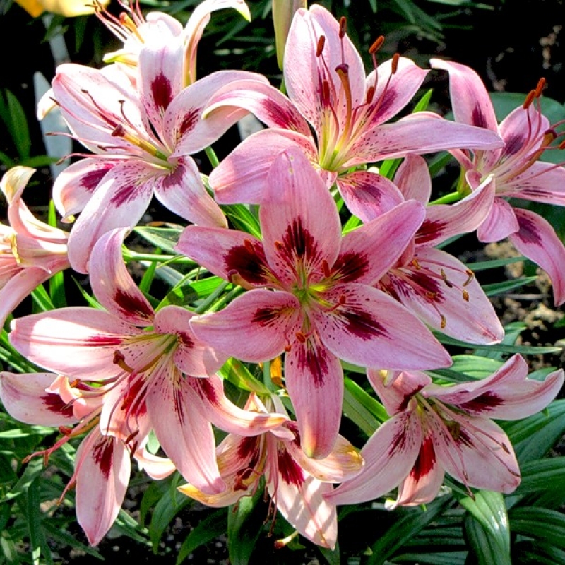 Эти лилии рослые, до 1,5 м, но при этом их цветки помельче – по 5-8 см в диаметре. Они предпочитают полутень и отличаются высокой морозостойкость. Основные оттенки – желтый, оранжевый, розовый, белый, лавандовый и красный.