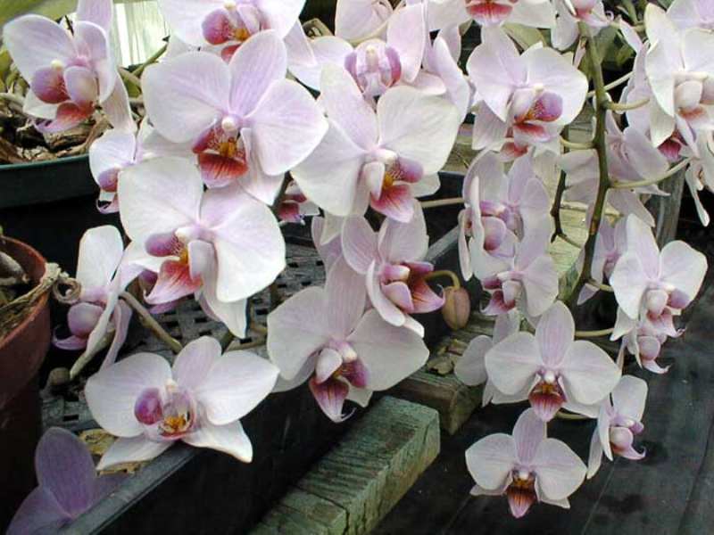 - Группа фаленопсисов с длинными, разветвленными соцветиями (до 1 м) и большими, круглыми по форме цветками, преимущественно розового или белого оттенков.