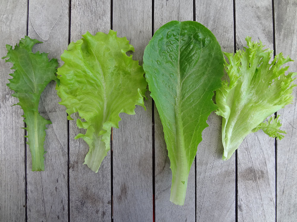Салат-латук имеет множество вариаций в размере, краях, краях и текстуре листьев. Некоторые листья могут быть гладкими, некоторые изогнутыми, некоторые взъерошенными, некоторые морщинистыми, а некоторые в форме дубовых листьев.Свободные листы могут быть желтого, зеленого, красного, красновато-бронзового или пурпурного цвета.