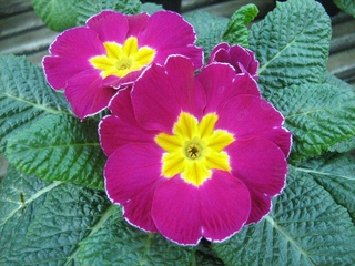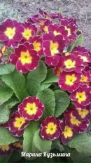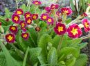 - Примула колоссеа – более крупные цветы с малиновыми лепестками и желтой звездочкой в центре;