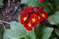 Примула китайская. Растение образует плотную розетку ажурных лопастных листьев. Над ними вырастают опушенные красно-коричневые цветоносы длиной 30-35 см. Каждый несёт всего несколько крупных (диаметром 4 см) цветов.