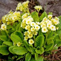 Примула высокая. Обитательница юга Европы отращивает морщинистые овальные листья с мелкими зубцами по краям. Длина листочков составляет 5-20 см, а ширина – 2-7 см. Красивые нежные цветы диаметром 2 см имеют светло-желтую окраску с более ярким центром. Они сгруппированы в зонтичное соцветие по 5-15 единиц. Высота цветоноса составляет 10-35 см. Цветение начинается в апреле и длится до двух месяцев. Сорта: