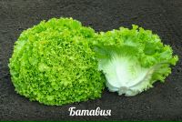 Листовой салат имеет крупную, полураскидистую розетку с зелеными листьями, волнистыми по краю. Иногда встречаются виды с красно-бурой окраской. Он хрустящий и на вкус сладковатый. Самый популярный вид салата у хозяек в мире. Его используют в качестве украшения для разных мясных, овощных и рыбных блюд. В листьях батавии содержатся витамины В, С, РР, фосфор, магний, бета-каротин. Это прекрасный помощник при лечении анемии.