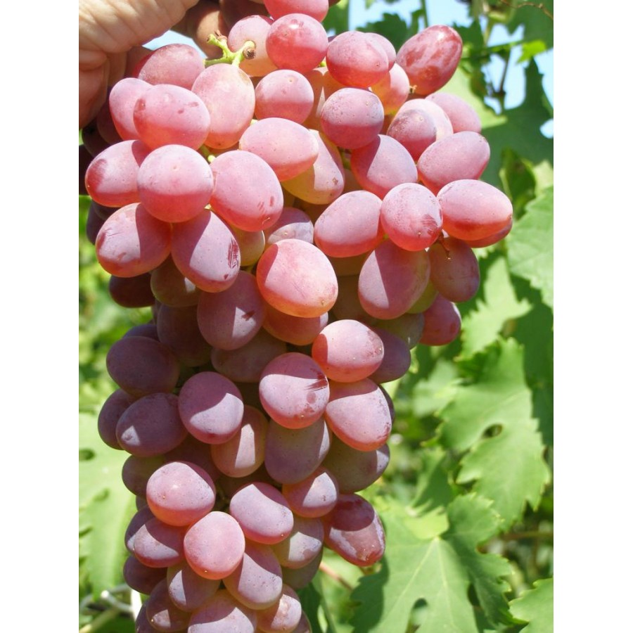 Гомиле великих и врло великих, 600-800 (1000) г, cilindričnog Oblika, sa два ramena, umjerena gustoća. srednje veličine bobica, 22х28 мм, 1 класс бессемянности (bez koštica), округле или благо овальног, црвенкасто-любичасте бой, тежине 4-5 г кожа е танка, як, оштар месо.