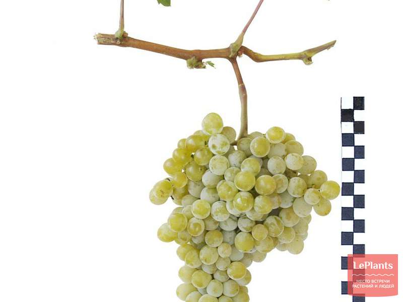 Цветы и плоды:Гроздь среднего размера, массой 250–300 г., цилиндро-конической формы, плотная.