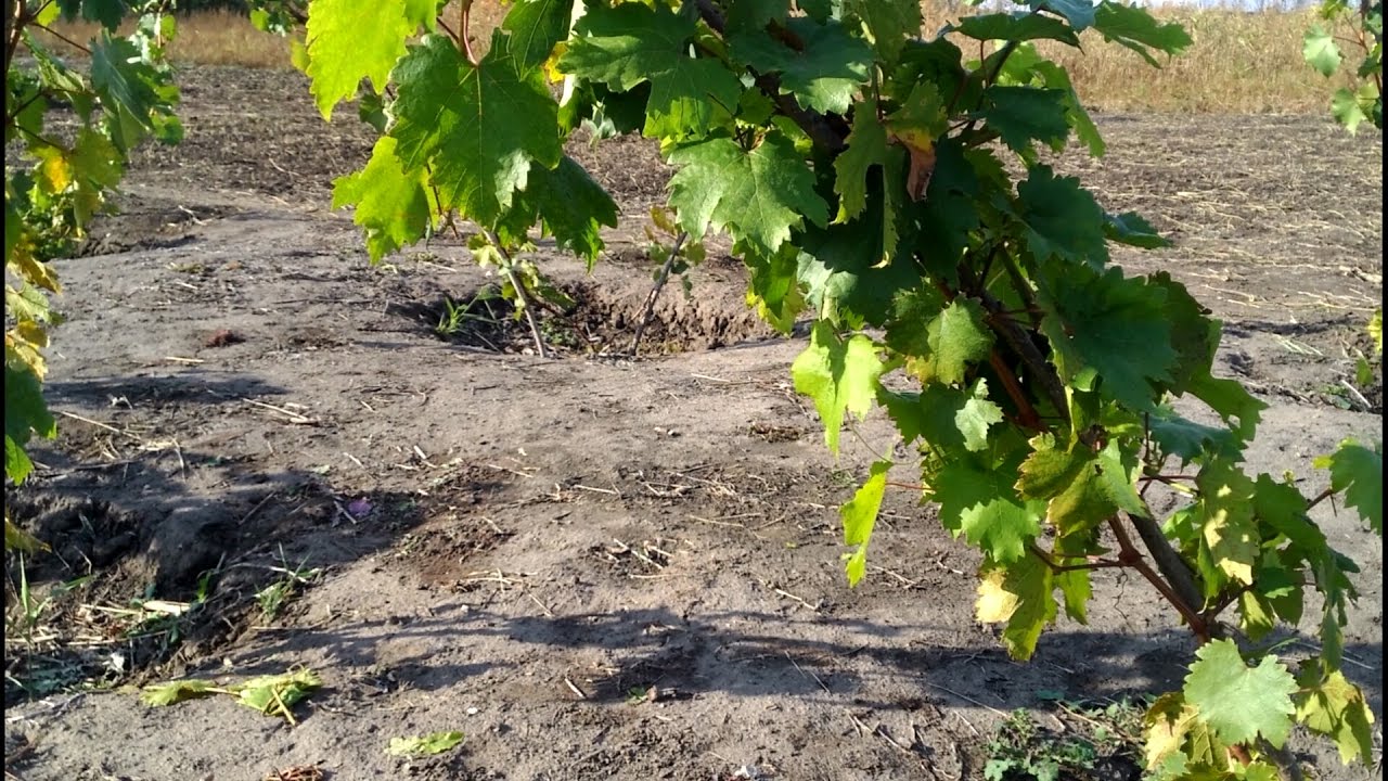 одна почка остается над почвой. Хорошо поливайте виноградные лозы и