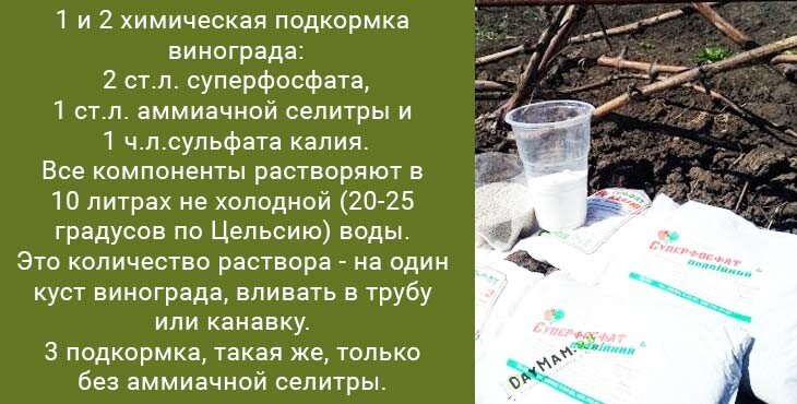 Для винограда очень нужны удобрения, калийные и фосфорные.