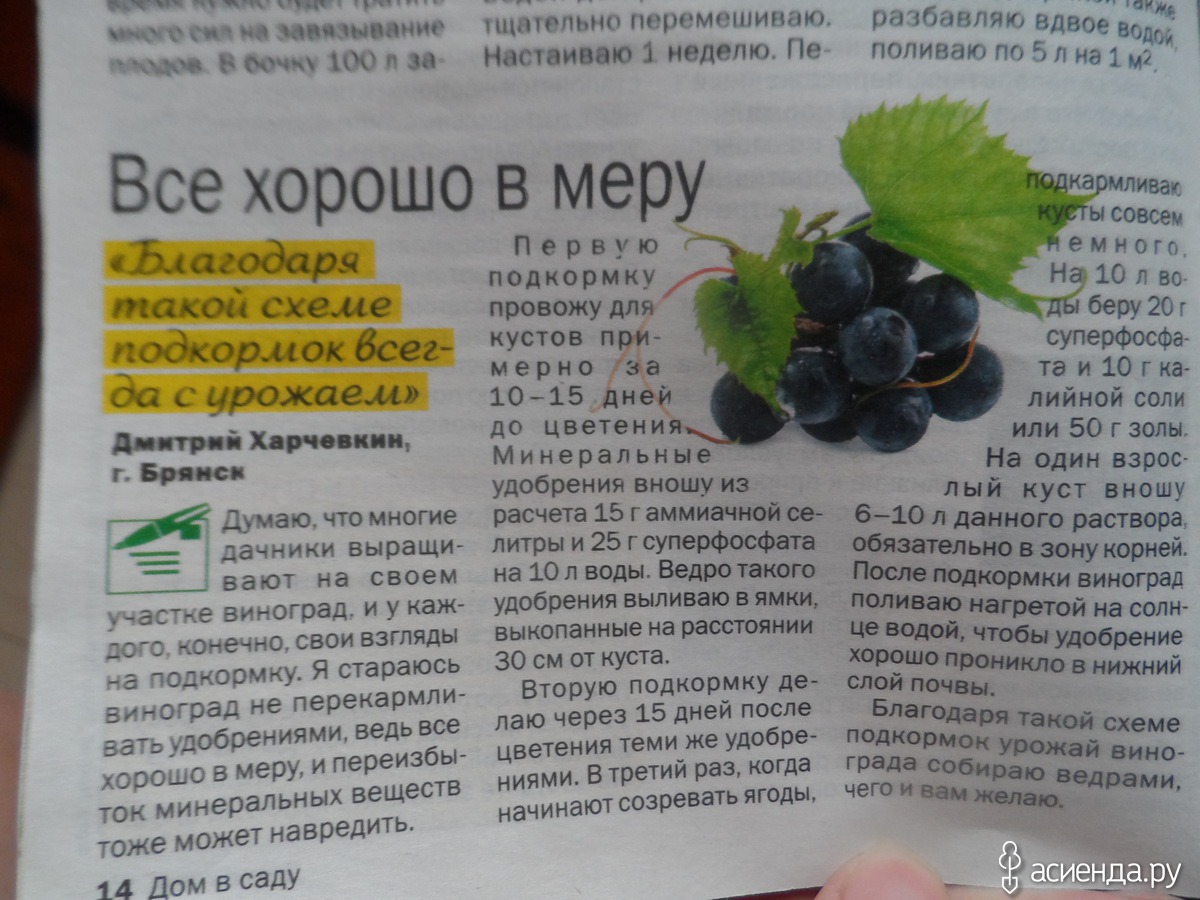 Когда подкормить виноград