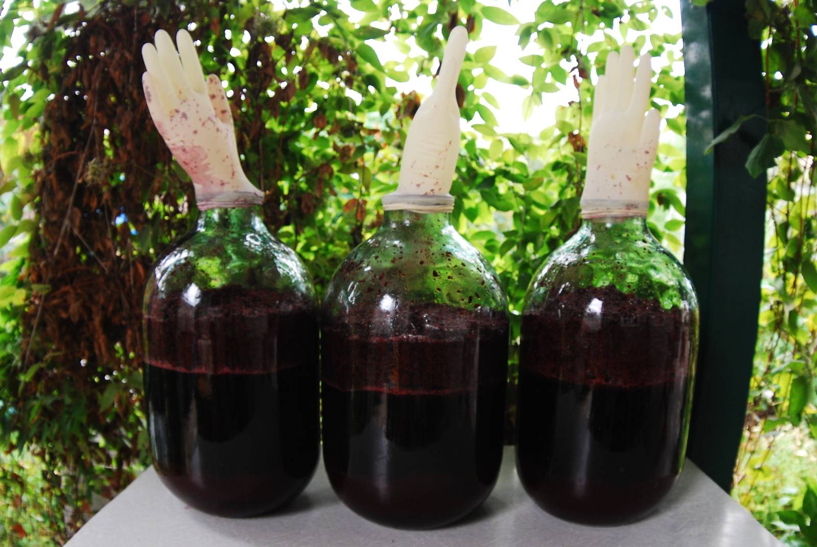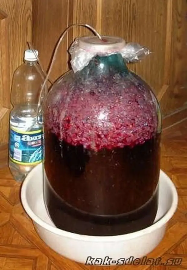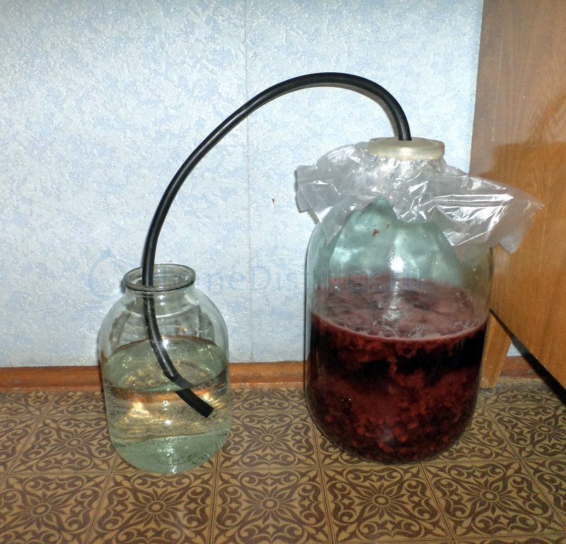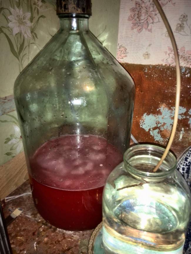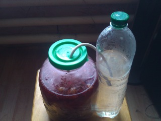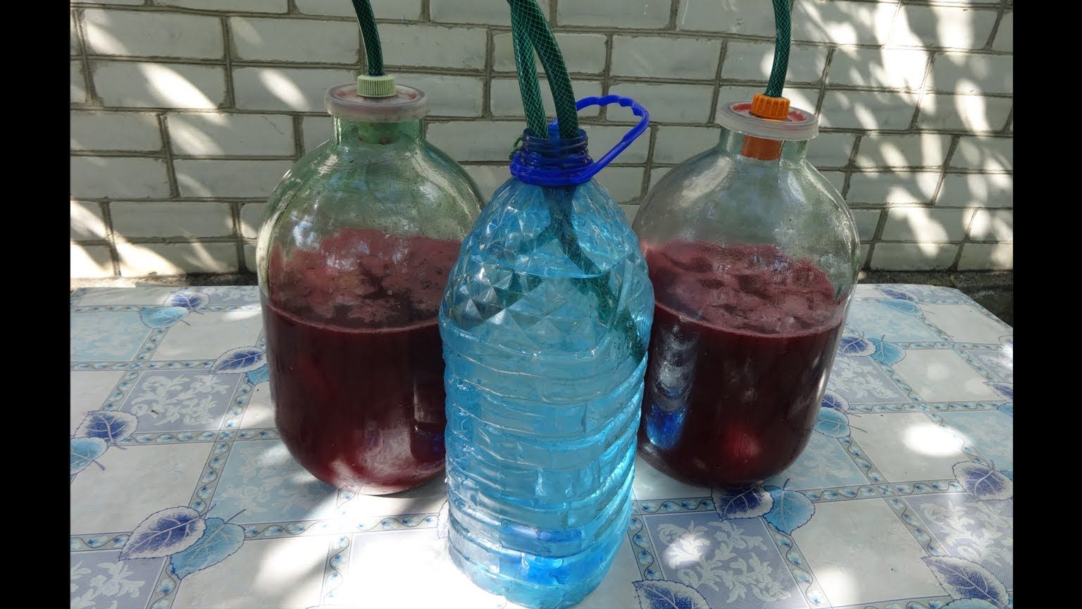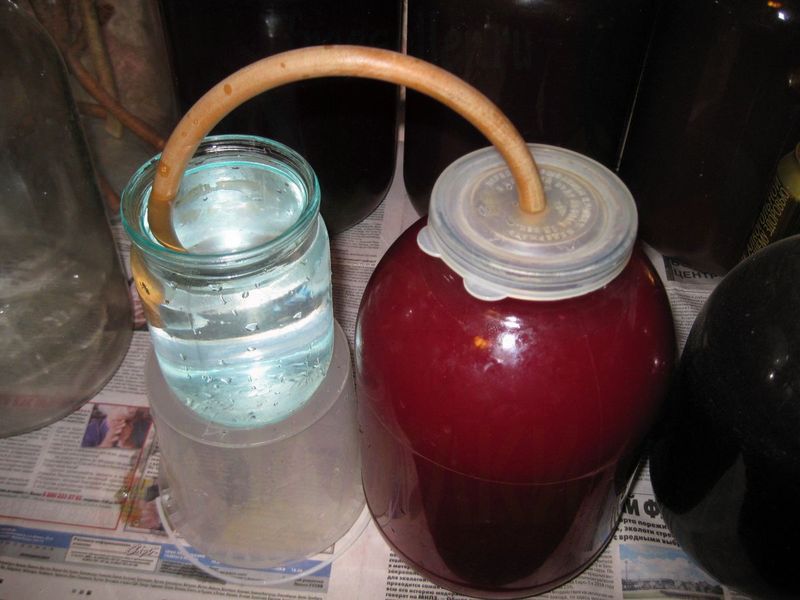 Наливать следует не полностью, а на 2/3 емкости, чтобы вину было где «играть». Налив сок, бутыль нужно закупорить специальной крышкой: в ней проделывается отверстие, в которое вставляется трубочка. По этой трубке и будет выходить углекислый газ, нужно опустить ее в баночку с водой, предварительно продув.
