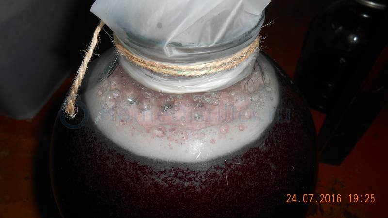 Когда мезга начнет подниматься, ее надо несколько раз в день перемешивать. Это обязательный процесс, независимо от того, какой у вас рецепт! Перемешивание не дает вину скиснуть и усиливает брожение.