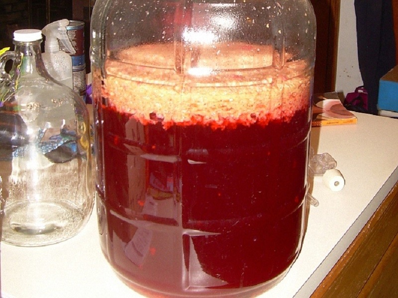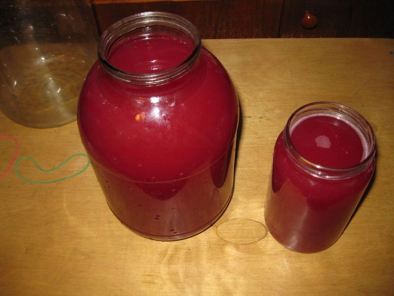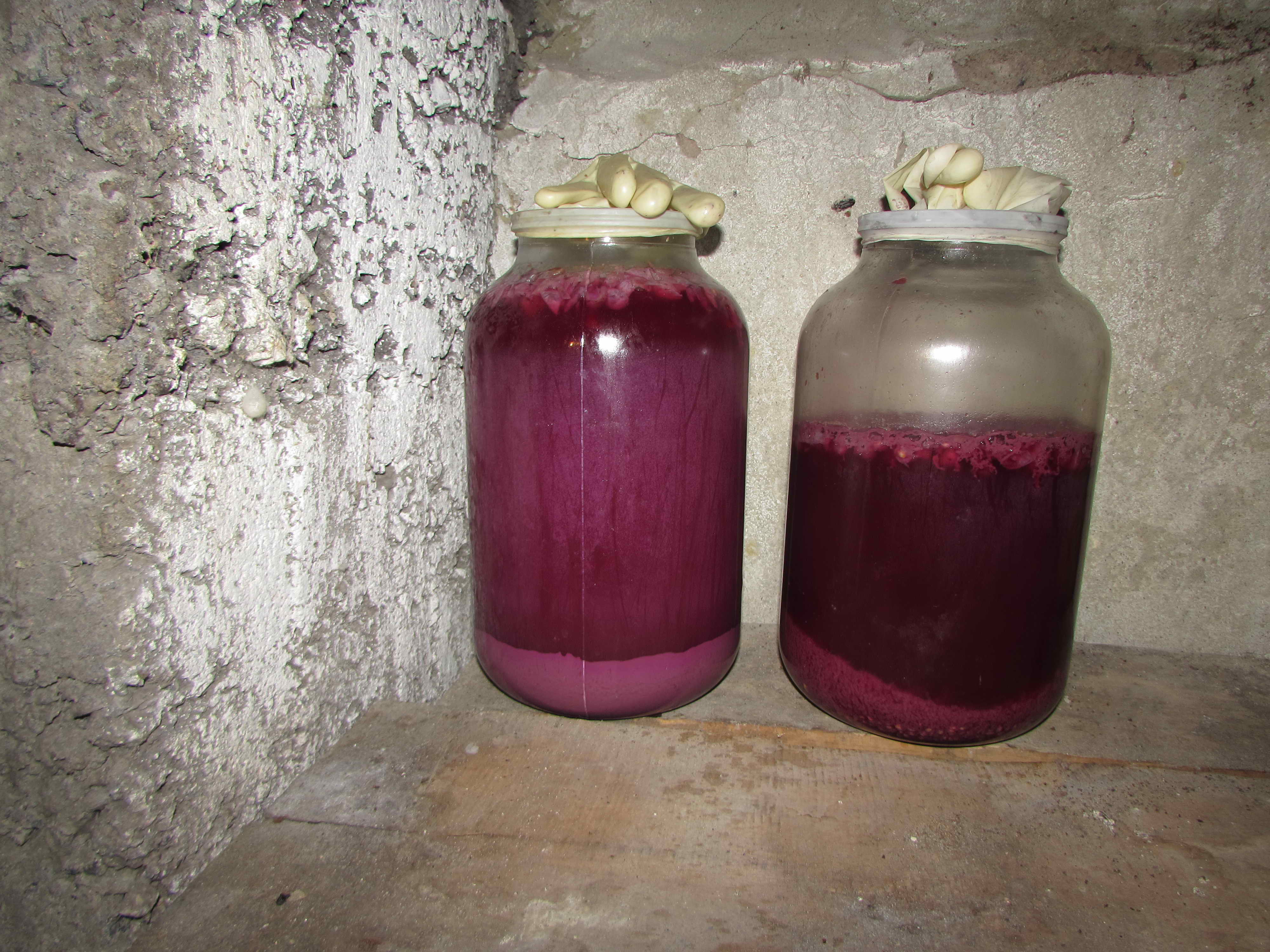 Измельченные ягоды накрываются марлей и отставляются в темное место на 3-4 дня. Иногда время ферментации увеличивают до 1-2 недель, получая при этом более темный крепкий продукт. В течение этого этапа важно несколько раз в день снимать мезгу, скапливающуюся на поверхности. После следует еще один значимый этап – отделение чистого сока. Для этого ложкой снимается вся мезга, а оставшаяся жидкость несколько раз пропускается через марлю.