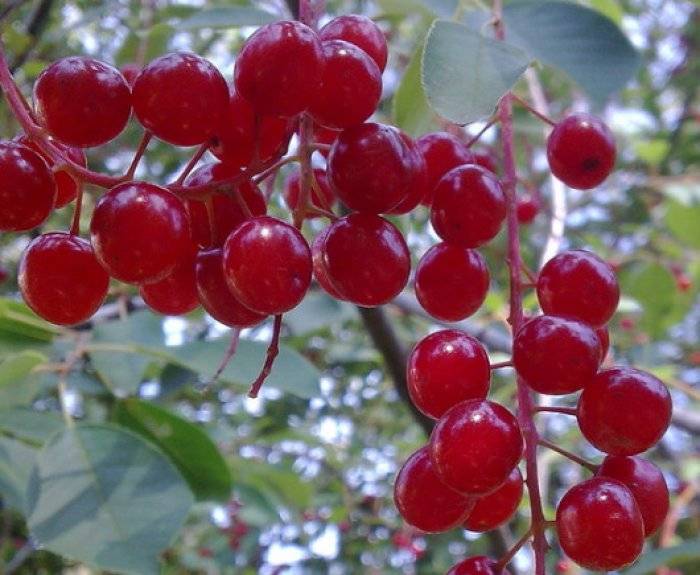 Поблескивающие бордовые ягоды обладают невыразительным кисловатым привкусом