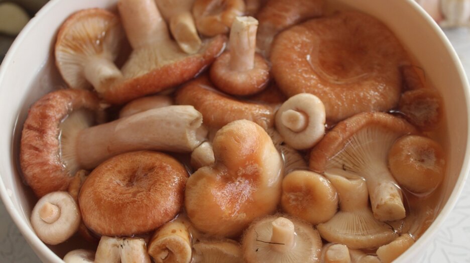 Определить, что волжанки готовы к засолке, можно «на ощупь». Достаньте гриб из емкости, где он вымачивается, аккуратно нажмите на шляпку. Мягко гнется, но не ломается — грибы вымочены как следует. Если волнушки заплесневели в емкости с водой, то для последующей засолки они не годятся, даже если вы хорошо их промоете.
