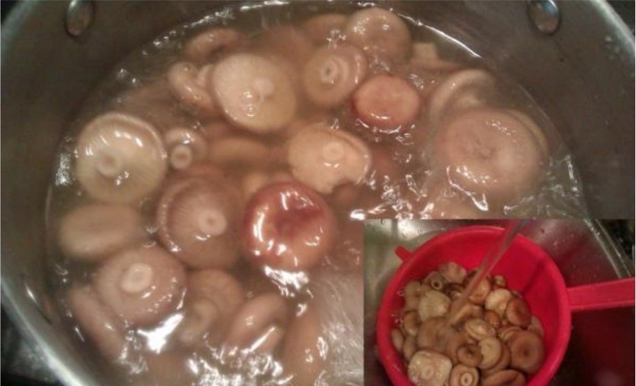 - Вымочите волнушки в подкисленной и подсоленной воде. Откиньте на дуршлаг.