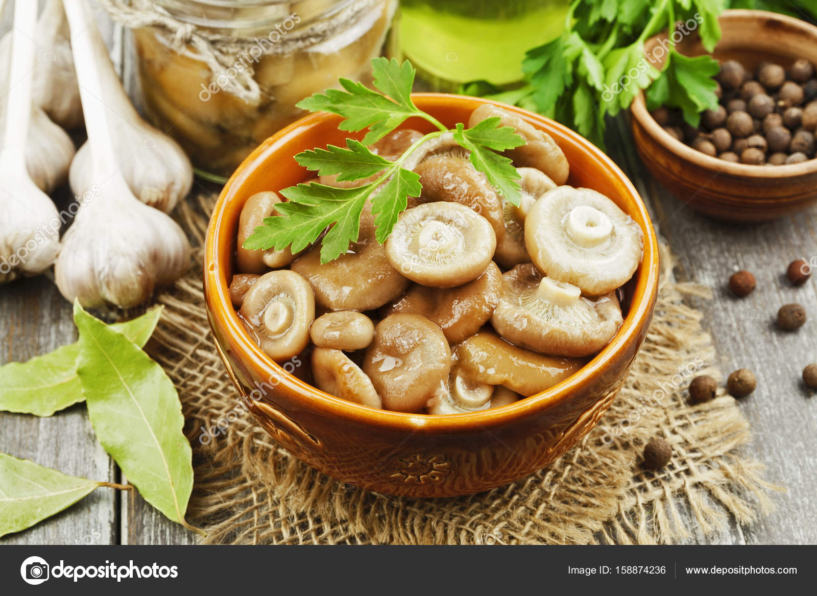 Теперь, когда грибочки очистились, выкладываем на стол все необходимые для их засолки ингредиенты.