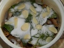 - Выложите шляпки в кастрюлю. Каждый слой щедро посыпьте солью.