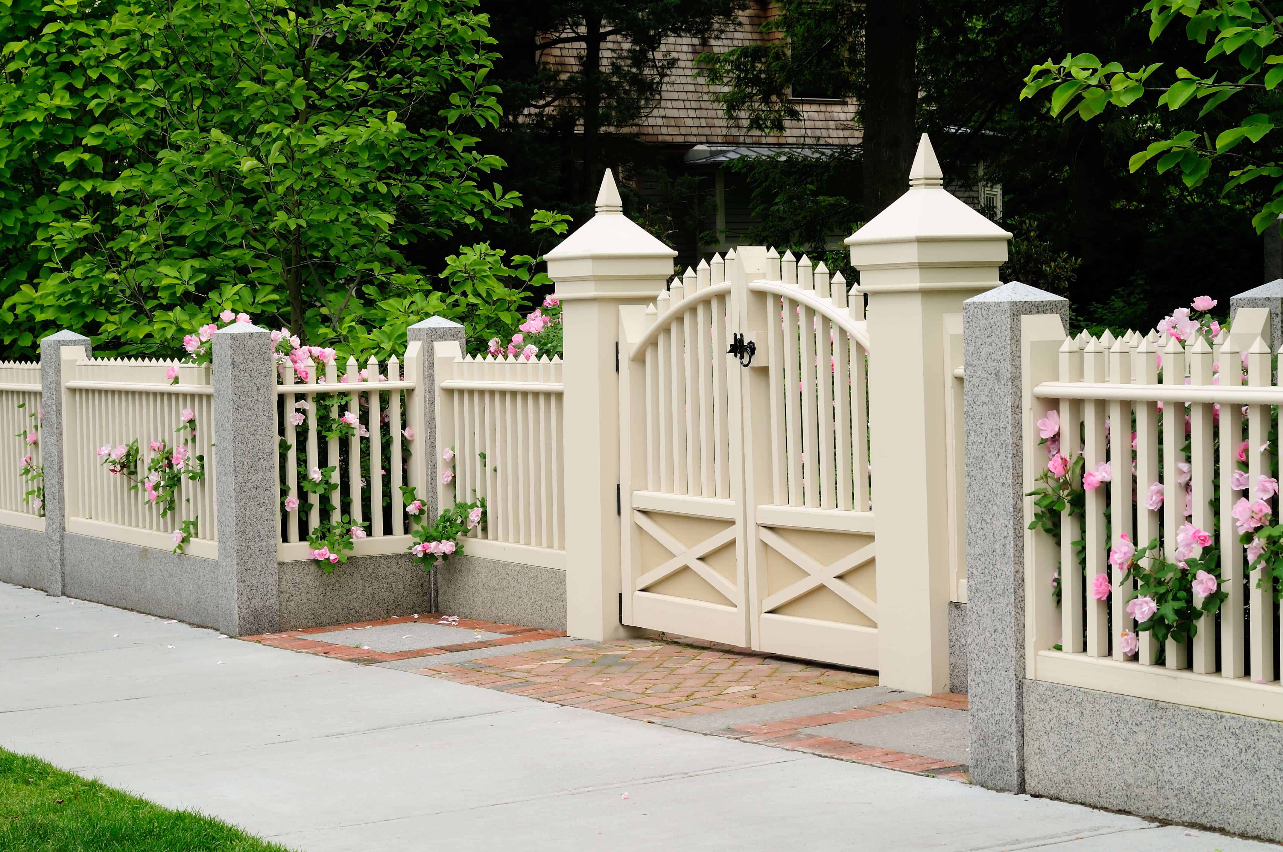 Важно! В любом случае, даже если ворота и калитка глухие, между нижним краем ограды и уровнем земли или фундамента нужно оставить открытое пространство для вентиляции насаждений, растущих рядом с забором.