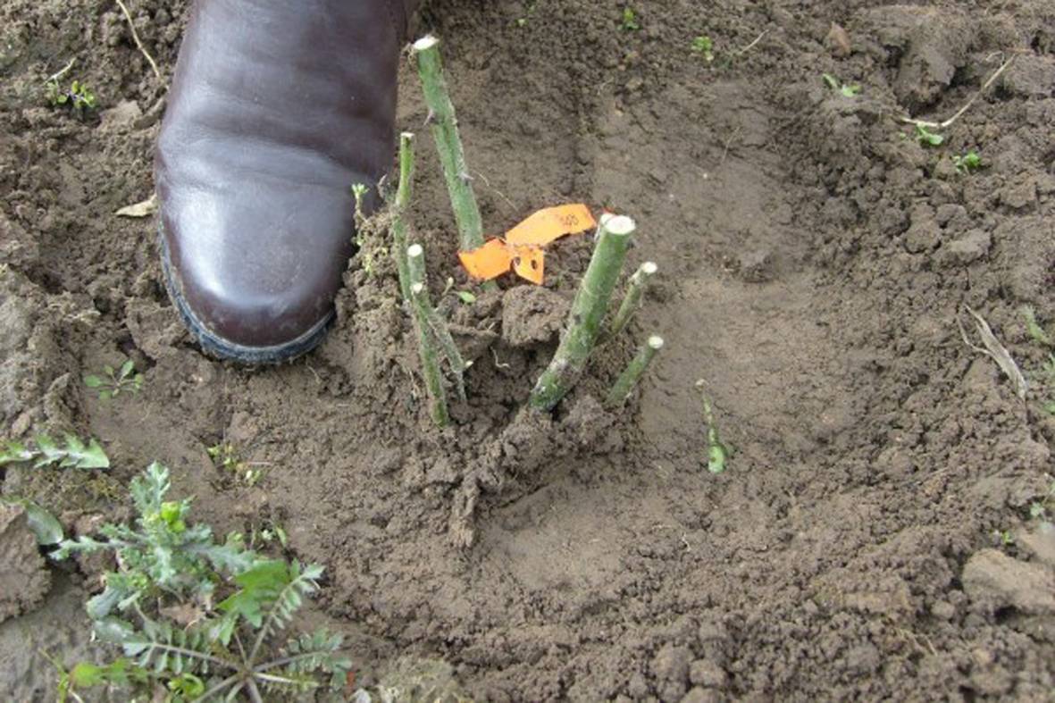 Когда посадка будет завершена, стебли следует обрезать до высоты 8-10 дюймов над землей. Иногда такую обрезку уже сделали питомник или другой источник. Выберите точку примерно на 1/4 дюйма над внешней почкой и острыми секаторами сделайте косой срез. Удалите все слабые или тонкие наросты, возникающие у основания тростей, перед установкой защитной насыпи почвы.