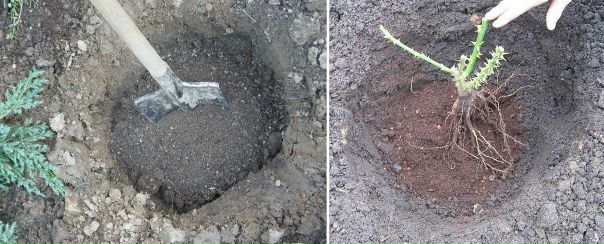 Можно заполнять готовым грунтом посадочные ямы, которые выкапывают на расстоянии до 1 метра от соседних кустов.