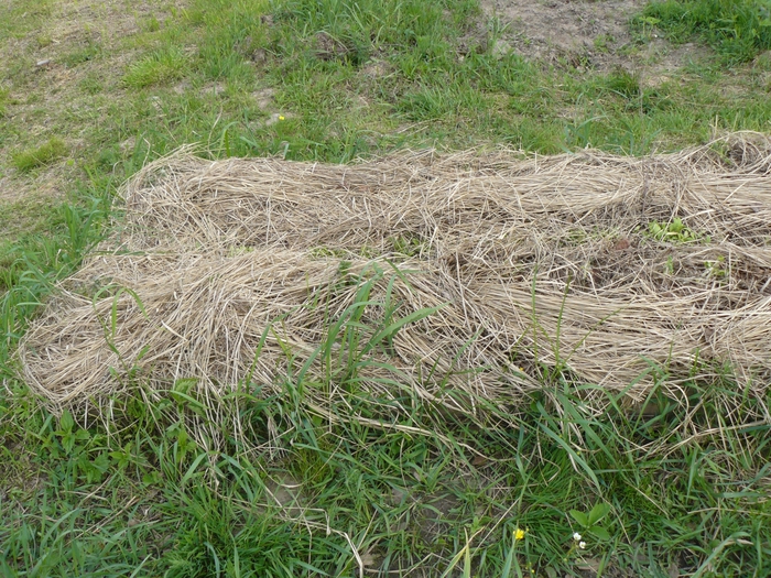 - Чтобы сено не сдувало ветром, можете немного присыпать землей сверху. В любом случае, иметь запас соломы – лишним не будет.