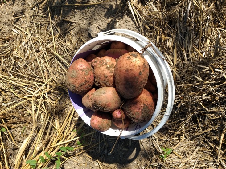 Я нашел картошку! Правда, окорочка была немного меньше, чем их почвенные сородичи. Но их было так легко собрать. В моем предыдущем методе мне пришлось использовать вилы, чтобы выкопать урожай. И обычно половину картошки я протыкал вышеупомянутыми вилами. Но этот залитый соломой картофель было удобно собирать вручную.
