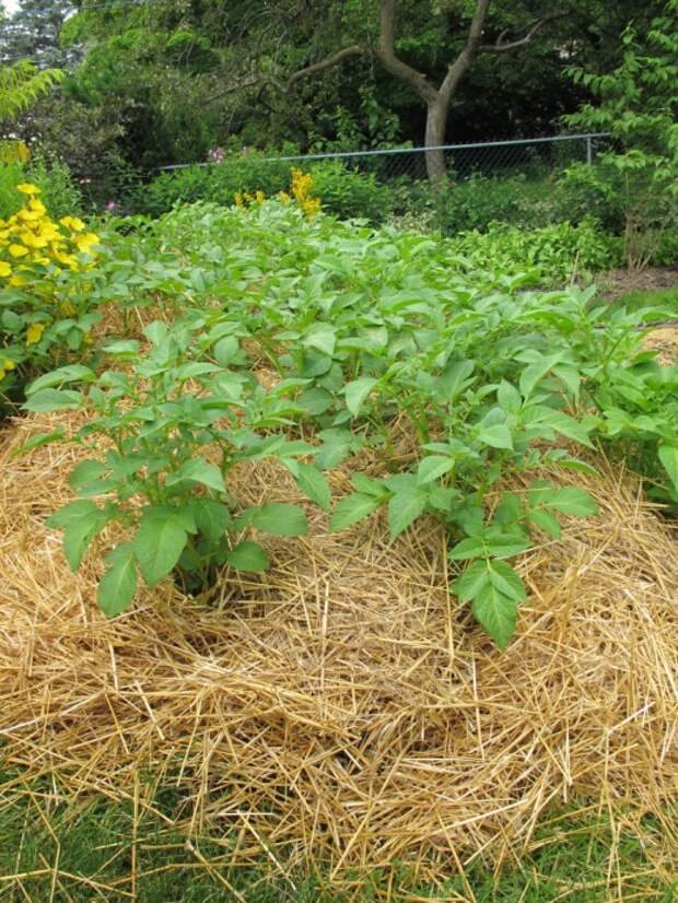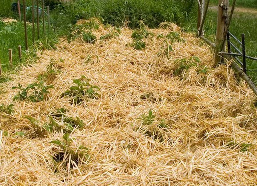 - Когда растения достигают 6-8 дюймов, начинайте окучивать соломой, как обычно.