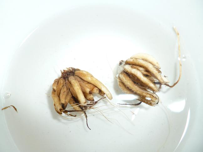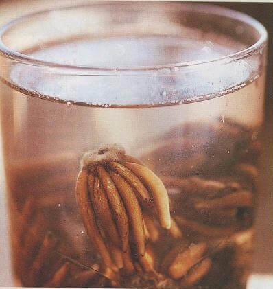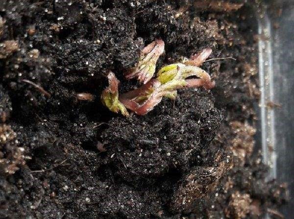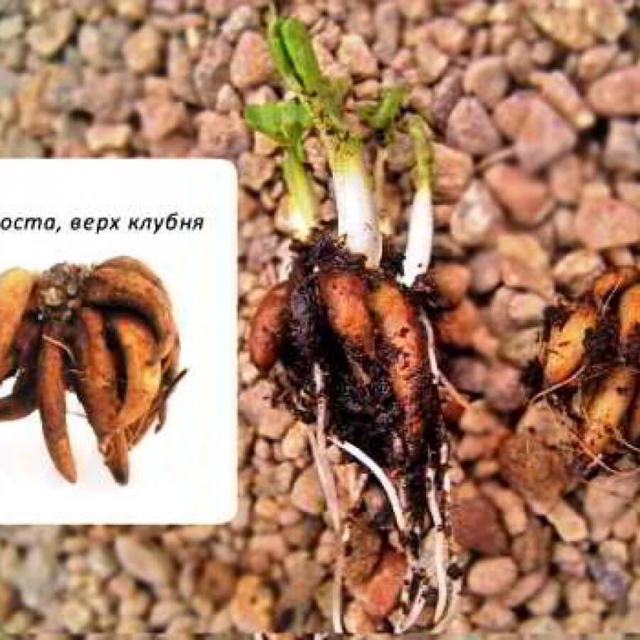 Клубни растения, которые приблизительно в течение 1-1,5 месяца хранились в прохладном помещении, теперь необходимо замочить в слабом розовом растворе марганцовки или в ускорителе роста. В течение двенадцати часов посадочный материал напитается необходимым количеством влаги, и корешки немного разбухнут.