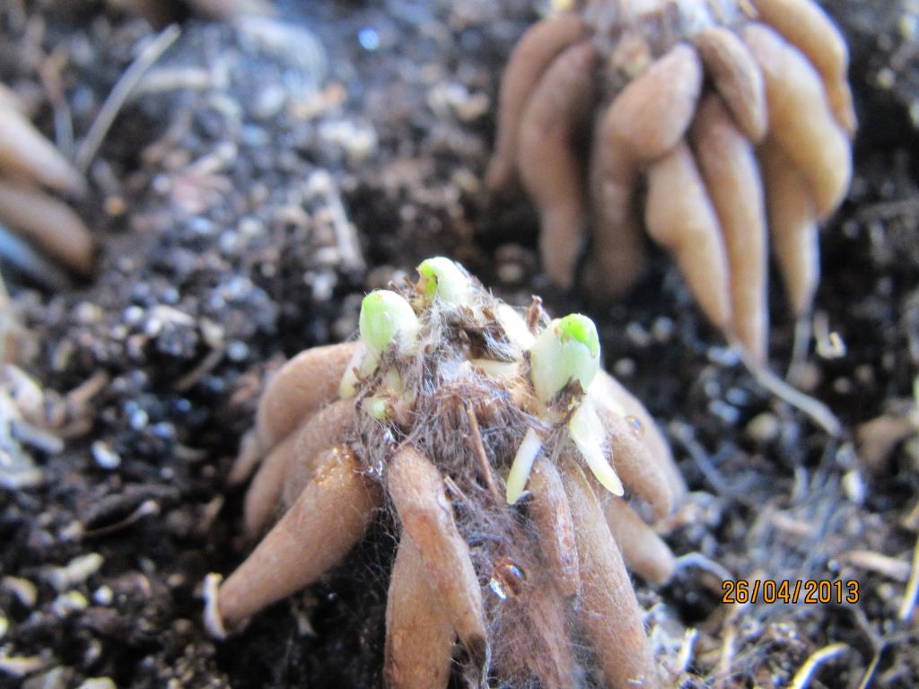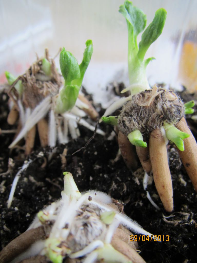 # 1 — Когда ваши клубни прорастут , поливайте их умеренно.Не переусердствуйте, клубни легко гниют.