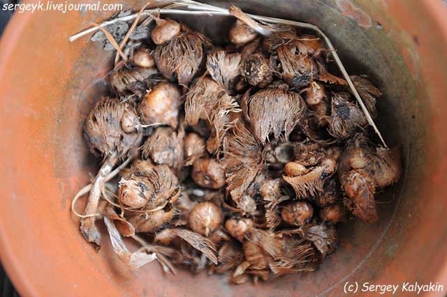Как только луковицы полностью высохнут, слегка погрузите их в сухой, воздушный материал, например вермикулит.