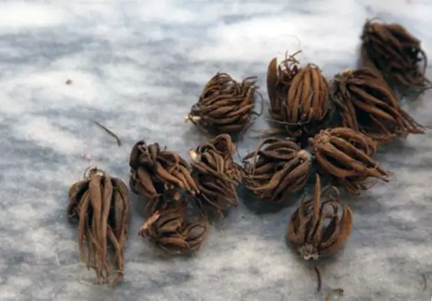 Клубнелуковицы ранункулюса выглядят очень интересно и необычно. Они похожи на ладонь с сомкнутыми кончиками пальцев или на крохотный клубень георгины.