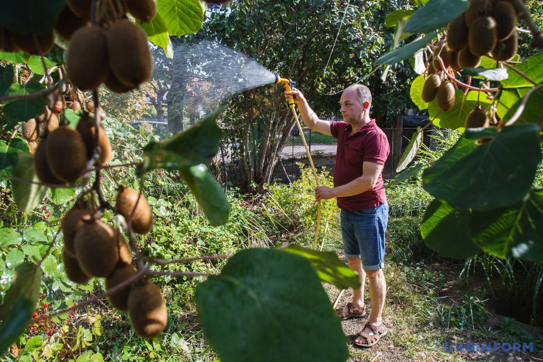 Важно постоянно поливать виноградные лозы киви, так как они плохо переносят засуху.