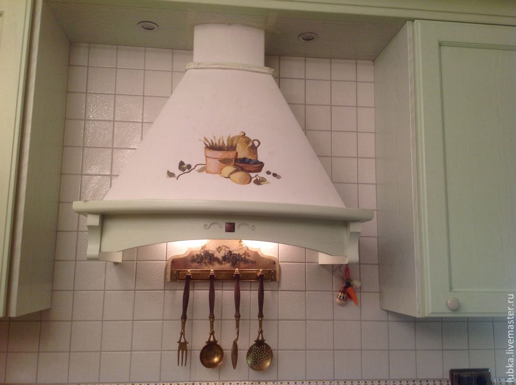 Да и замаскированная вытяжка смотрится гораздо более эстетично, нежели отдельный прибор, установленный над плитой. При соответствующем подходе и незначительных затратах, вы можете создать поистине уникальный вариант вытяжного устройства.