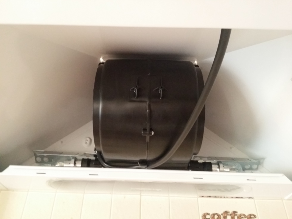 Самый простой способ сделать вытяжку – это встроить в кухонный шкафчик, размещенный непосредственно над плитой или варочной поверхностью, гофротрубу с электровентилятором.