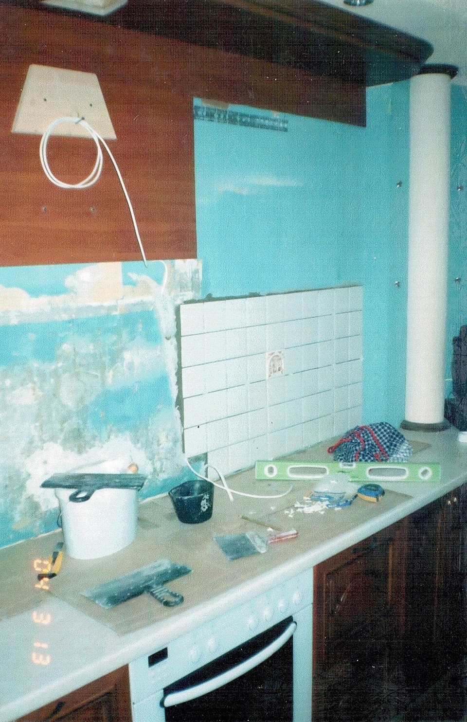 Начинаем работы по изготовлению вытяжки с разметки помещения. Нам необходимо будет разместить на стене не только саму вытяжку, но и воздуховод, который мы для обеспечения эстетичности внешнего вида нашей кухни скроем в коробе из гипсокартона.