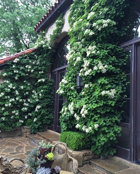 Плющ и гортензия seemannii — распространенные виды корневищных вьющихся растений.
