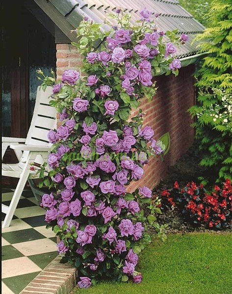 Черенки плетистых роз высаживают вдоль изгороди, или любой другой постройки. Многолетние лианы быстро поднимаются по вертикальной опоре и нуждаются в фиксации молодых побегов. Нежные бутоны распускаются еще в июне, а изумрудная зелень украшает участок до самых заморозков.