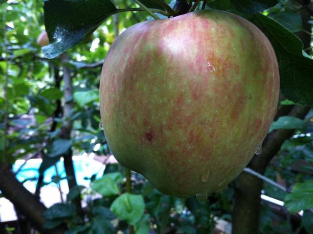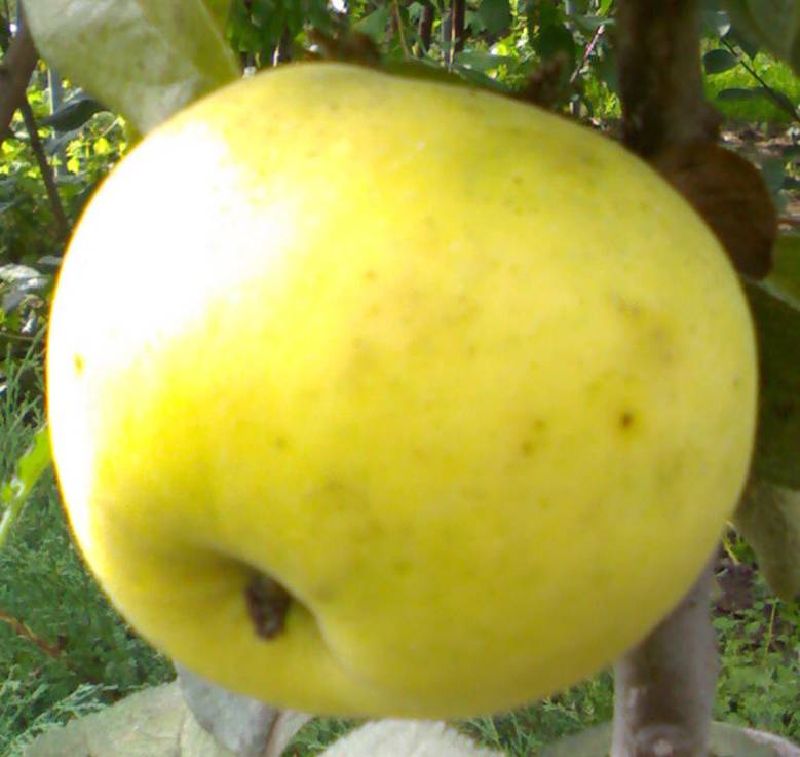 Форма яблока бочонкообразная, вкус хороший. Дерево растет медленно. Невысокое.
