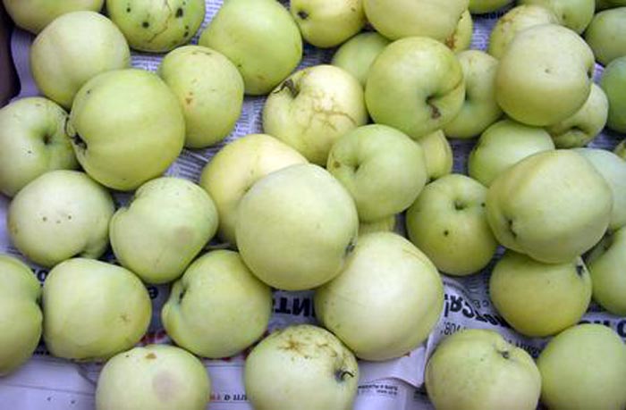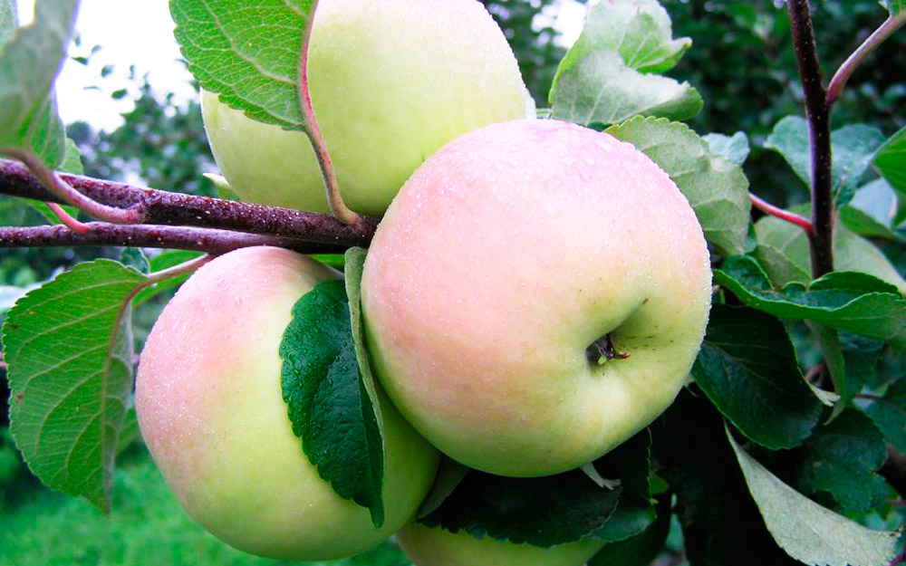 «Уральское наливное». Зеленые плоды массой 40-45г, хорошего сбалансированного вкуса. Дерево зимостойкое. Если древесина подмерзает, то быстро восстанавливается. Сорт урожайный.
