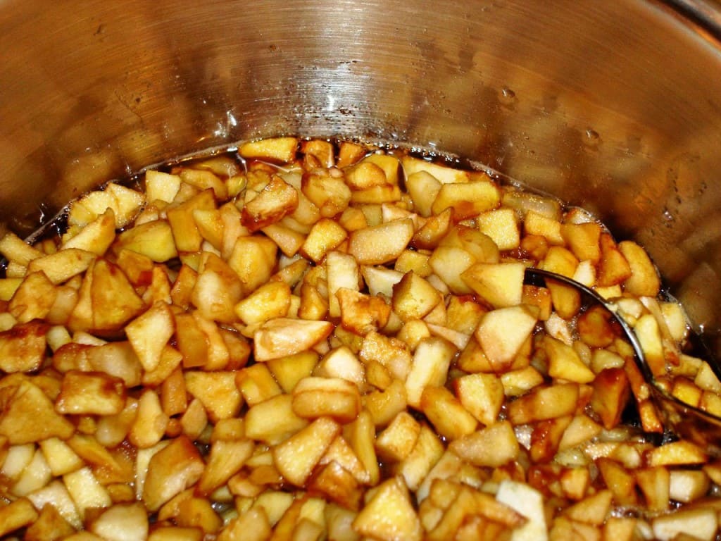 Это также помогает создать клейкость, напоминающую начинку для яблочного пирога. - Лимонный сок – терпкий лимонный сок уравновешивает сладкие яблоки.