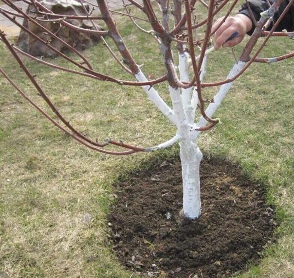- Побелка стволов;