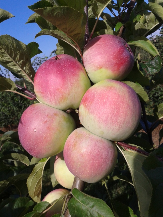 Плодоножка очень маленькая её почти невидно .Яблоки сами по себе упругие твёрдые,внутренняя яблочная мякоть сочная,нежная к вкусовым привкусам,отмечена большим наличием сахара,яблоки очень сладкие как конфетка.Холода и заморозки переносит нормально.