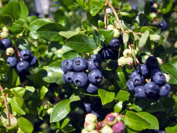 Кусты зацветают в мае нежно-розовыми цветочками. - Урожай черники созревает в первой половине лета.