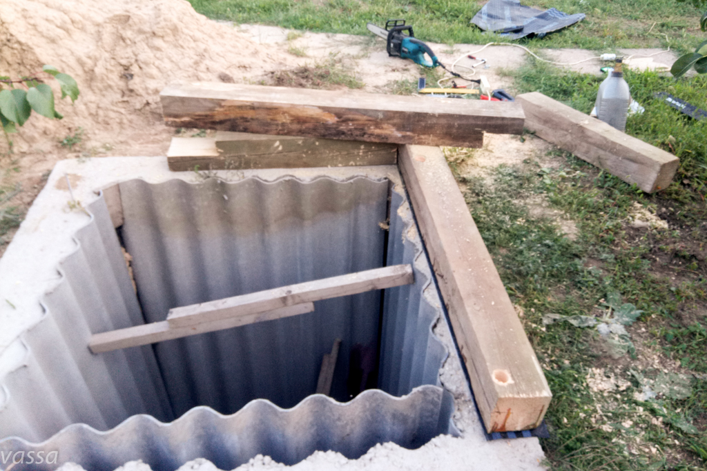 Крышку укладывают из металла толщиной 4-5 мм или сбивают деревянный щит.